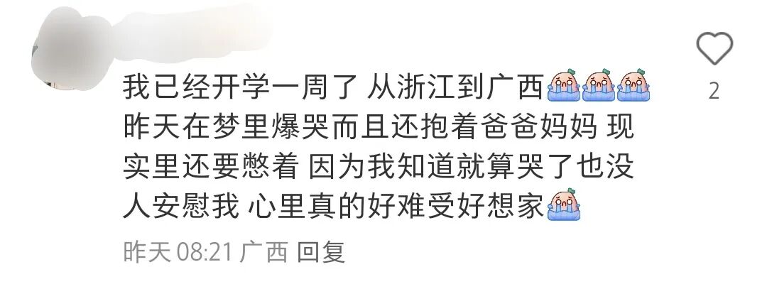 谈起害怕开学的原因,同学们表示:“不想离开我的大床。”“好难受好想家。”……