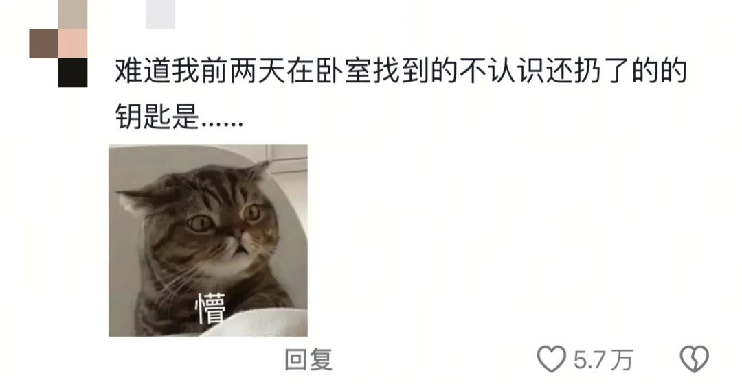网友:“难道我前两天在卧室找到的不认识还扔了的钥匙是……”