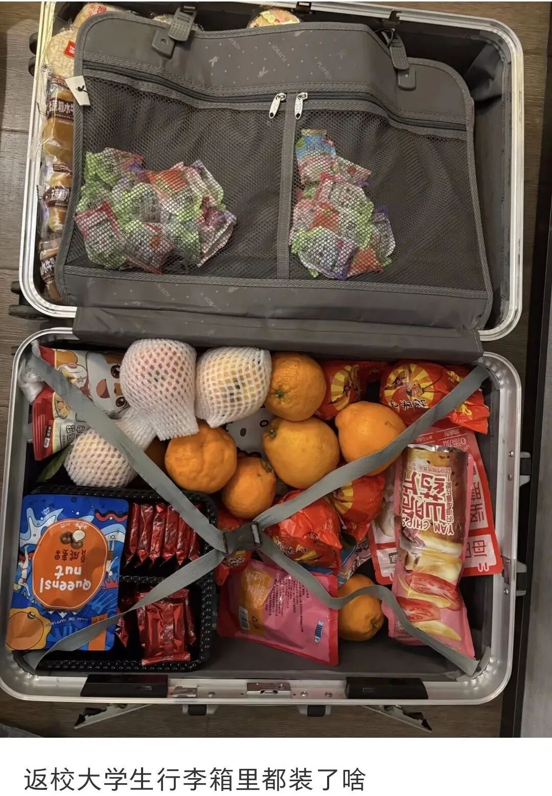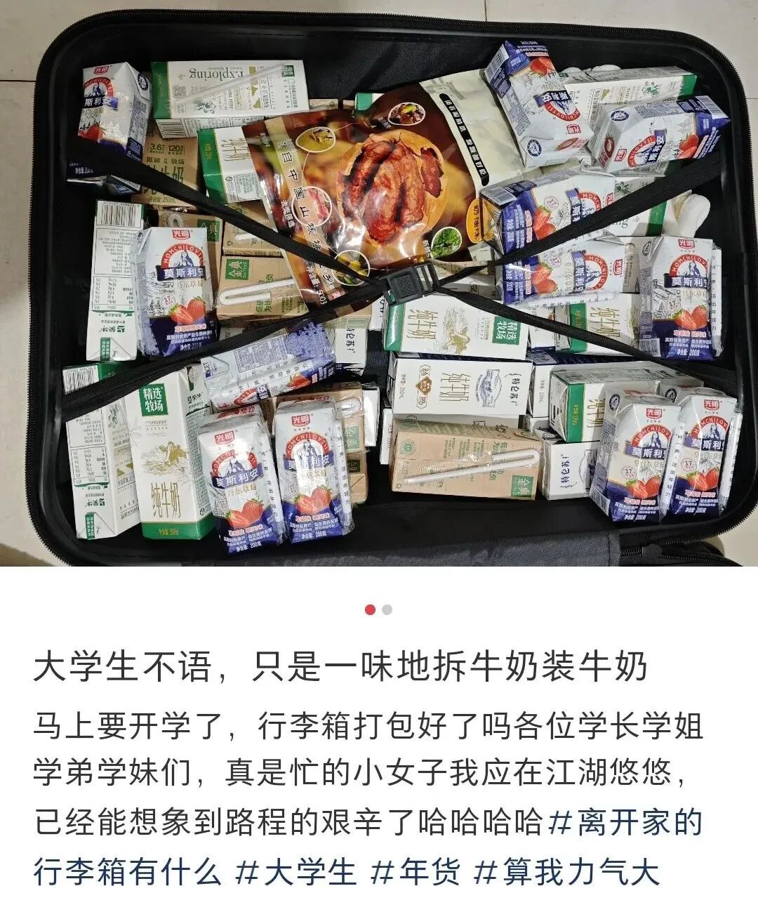 临近开学,大学生们纷纷开启“掏家底”式返校:零食、牛奶、特产……主打一个能带就带,恨不得把整个家“搬空”。