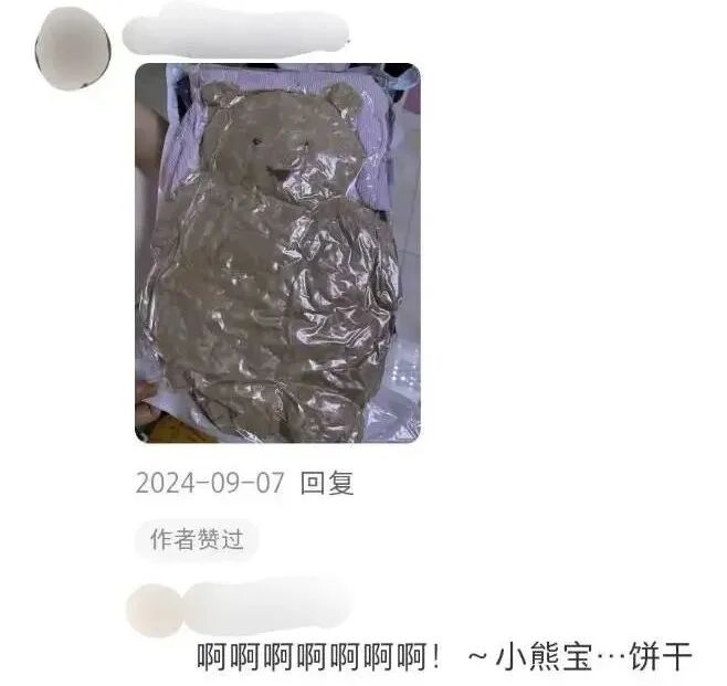 娃娃太大实在装不下,没关系,大学生有的是办法把熊压成熊“饼”就好啦!