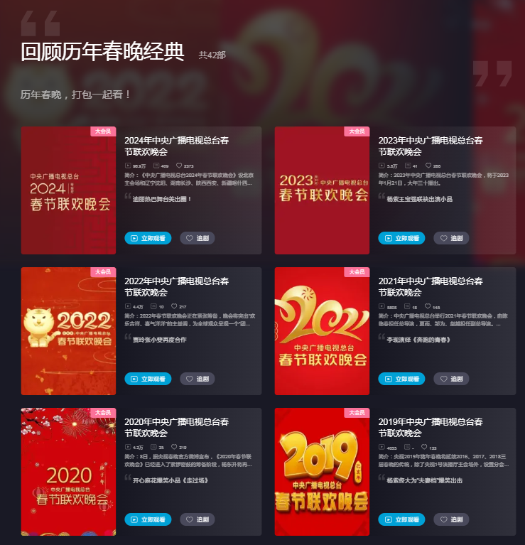 On Wednesday, Bilibili launched shows from the past 42 years of CCTV Spring Festival Galas, from 1983 to 2024. Every iconic moment that brought us laughs and tears is now just a click away.