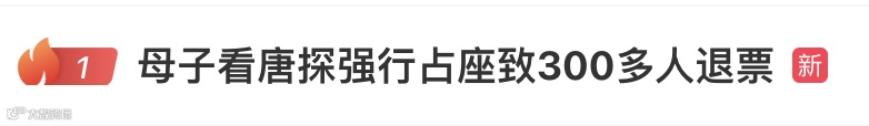 A mother and son caused a disturbance at a cinema when they forcibly occupied "better" seats than the ones they had purchased during a screening of Detective Chinatown 1900 on Wednesday in Bengbu, Anhui province. The film showing was unable to continue, and the cinema had to refund all 300 audience members for their tickets.