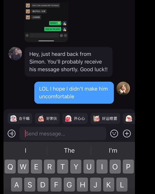 1月16日上午10:13,卡塔琳娜再次发布视频,表示西蒙已经找到,并附上知道西蒙的网友联系她的聊天图片,西蒙本人也在视频评论区回应。