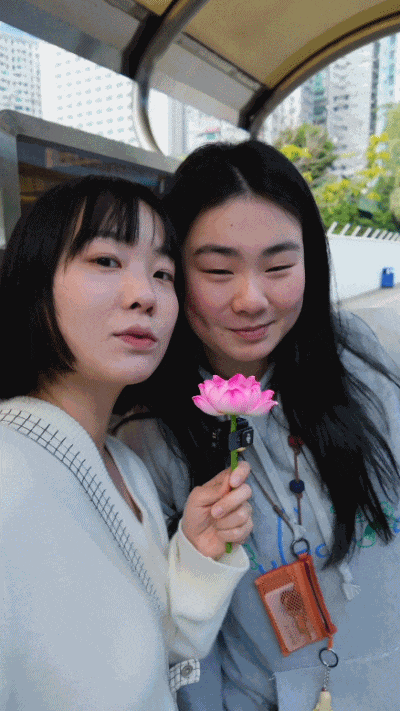 记者小彭(视频号:小彭彭译萱)手拿代表澳门的莲花造型的话筒,在东西方风情交融的澳门开启一场别样街采。