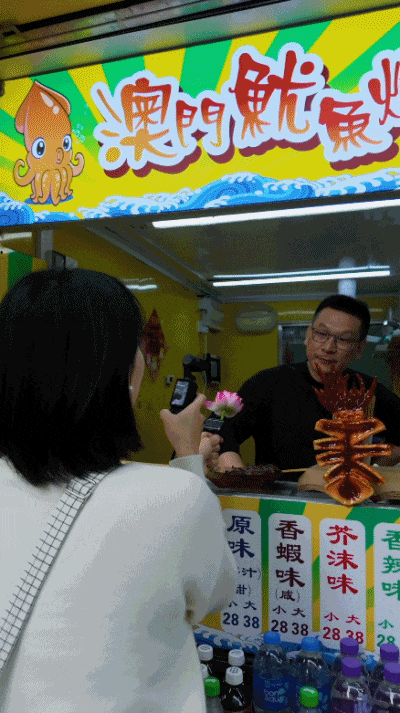 A squid grill vendor's comment stood out when asked about the changes in Macao over the past 25 years. "The biggest change is that we've become busier. Now, we're cooking every day to serve you," the vendor told Peng Yixuan.