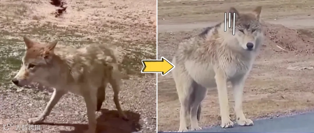 不过,这匹野狼因为不断被人投喂,最初毛发凌乱、瘦到皮包骨头,后来不但体型变得滚圆,还会向过往车辆撒娇讨食。
