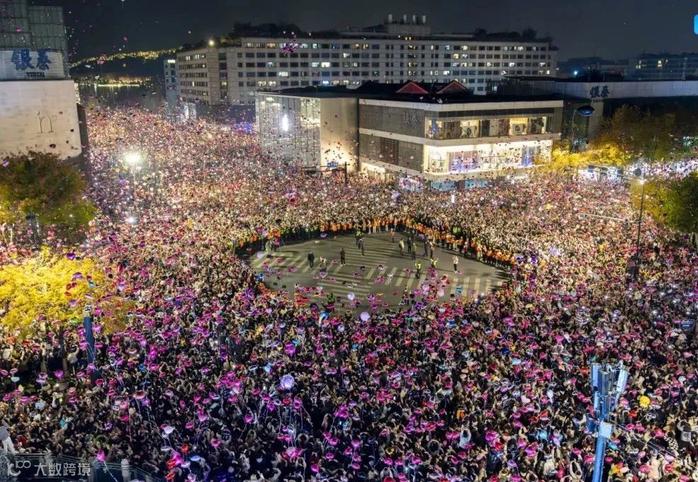 今年跨年夜,浙江省杭州市上城区湖滨步行街峰值人流近9万,累计人流超过27万。