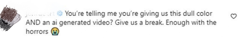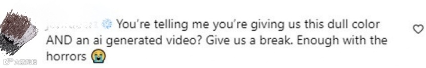 一位网友写道:“你是在告诉我,你们选出了这样一个沉闷的颜色,还给我们一个人工智能生成的视频?饶了我们吧,这太恐怖了!”