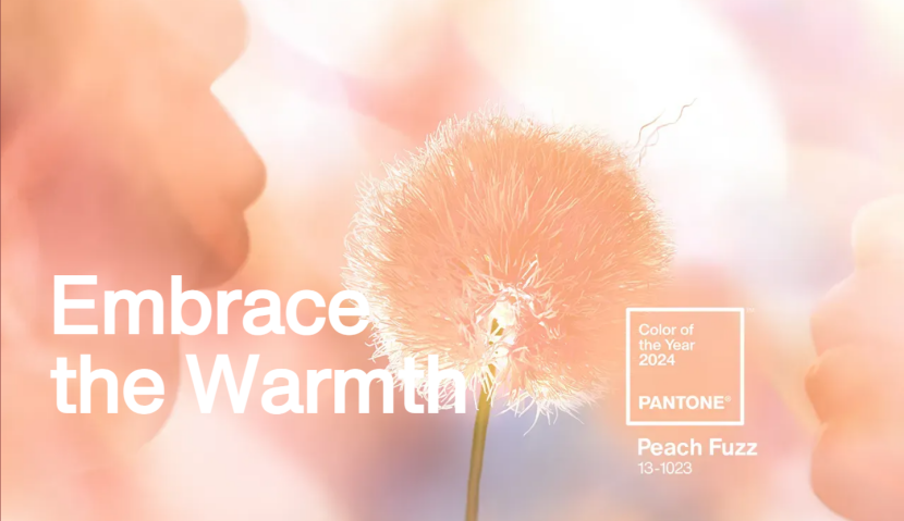 Pantone's color of the year for 2024 is PANTONE 13-1023 Peach Fuzz, a gentle and nurturing peach shade that serves as a reminder to slow down and care for ourselves and one another.