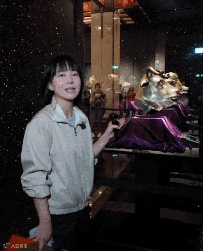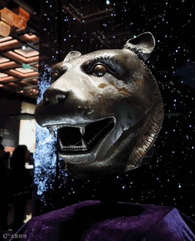 记者小彭(视频号:小彭彭译萱)注意到,兽首铜像充满细节,你甚至可以看到上面不同程度的划痕,诉说着文物流转回归的曲折身世。猪首顶部有一处凹坑,而虎首的一副虎须只剩下一根。