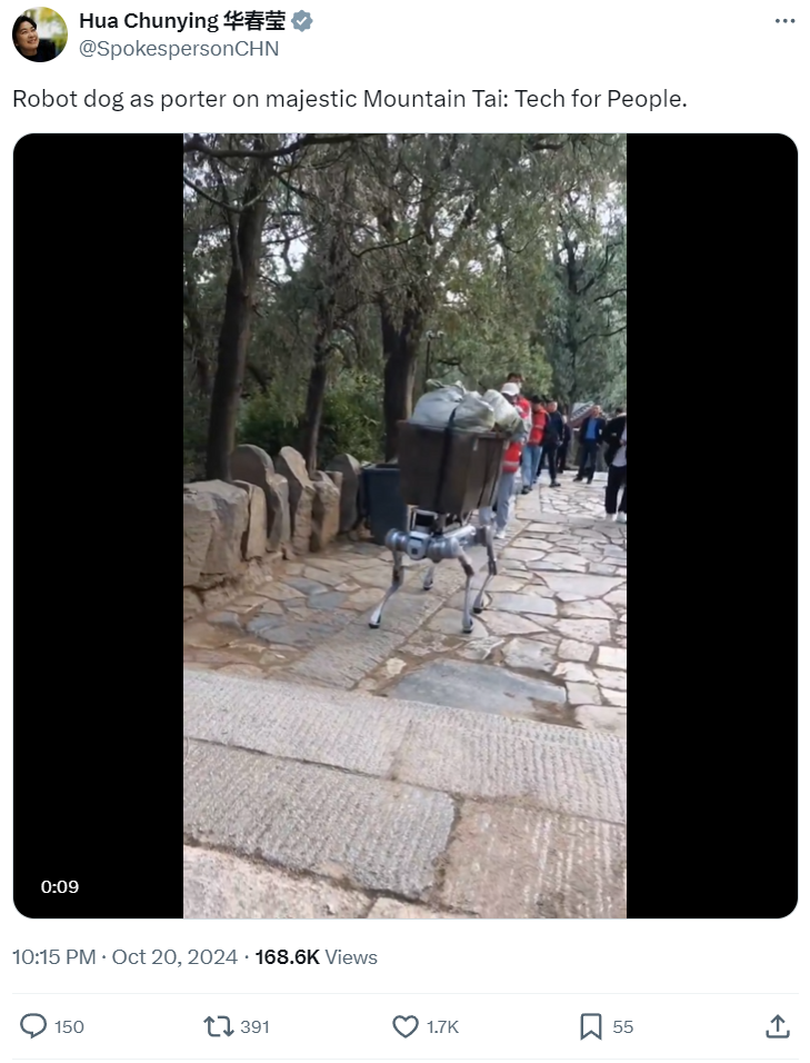 Robotic dogs are introduced for waste collection tests at Taishan Mountain scenic area to improve transportation efficiency based on the latest technology and advanced practices from other locations.