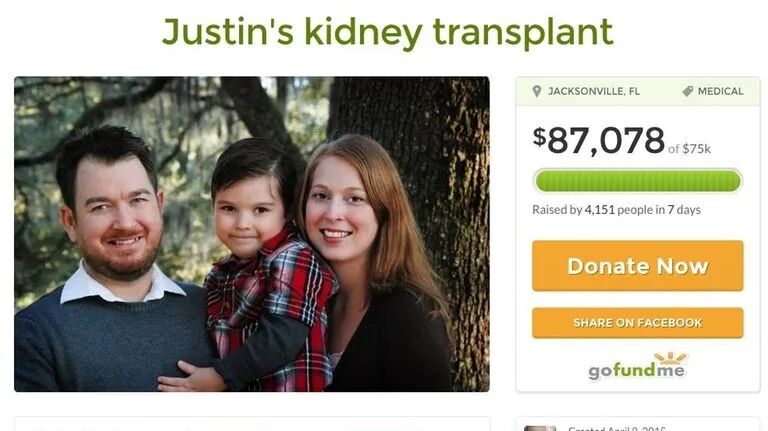 Laney decided to launch a GoFundMe site to help find a living donor and raise funds toward the costs of Justin's transplant surgery. Medicare would cover 80 percent of Justin's post-surgery costs, but the Griner's still needed $12,000 to cover prescription drugs for the first year alone, noting that Justin would need to be on a variety of prescription drugs for the rest of his life.