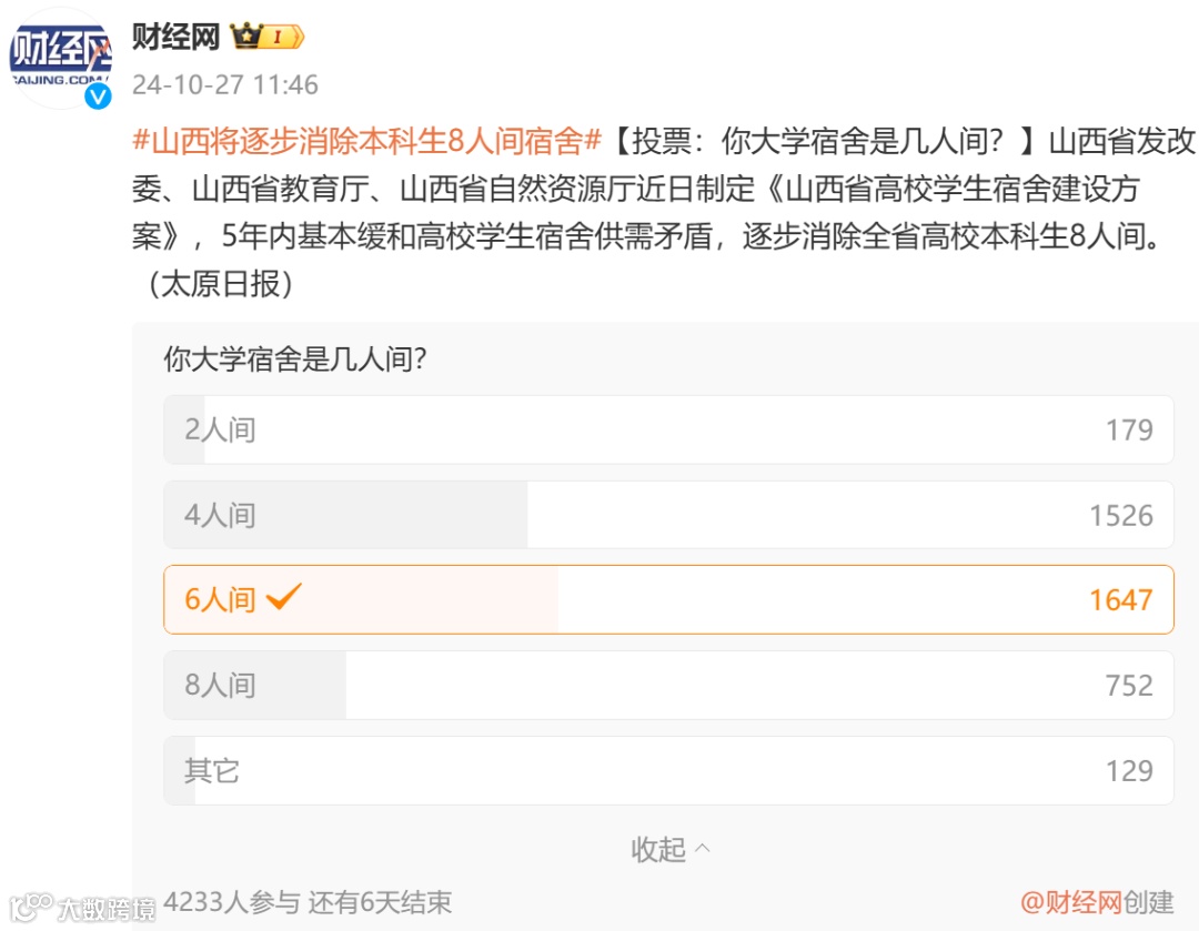 Shanxi province has announced plans to phase out the practice of housing undergraduates in 8-bed dormitories. This initiative aims to address the ongoing issue of the supply-demand imbalance in college student housing.