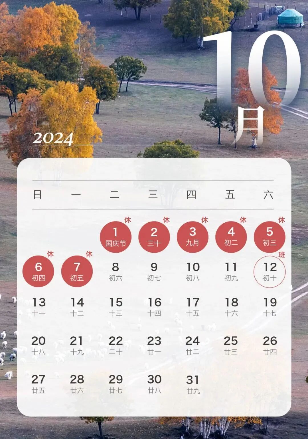 刚刚过完中秋,国庆假期又要到啦!今年国庆节将从10月1日至10月7日放假调休,共7天,9月29日(星期日)10月12日(星期六)上班。