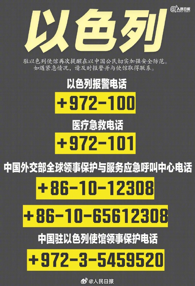 如遇紧急情况,请及时报警并与中国驻以色列使馆取得联系。