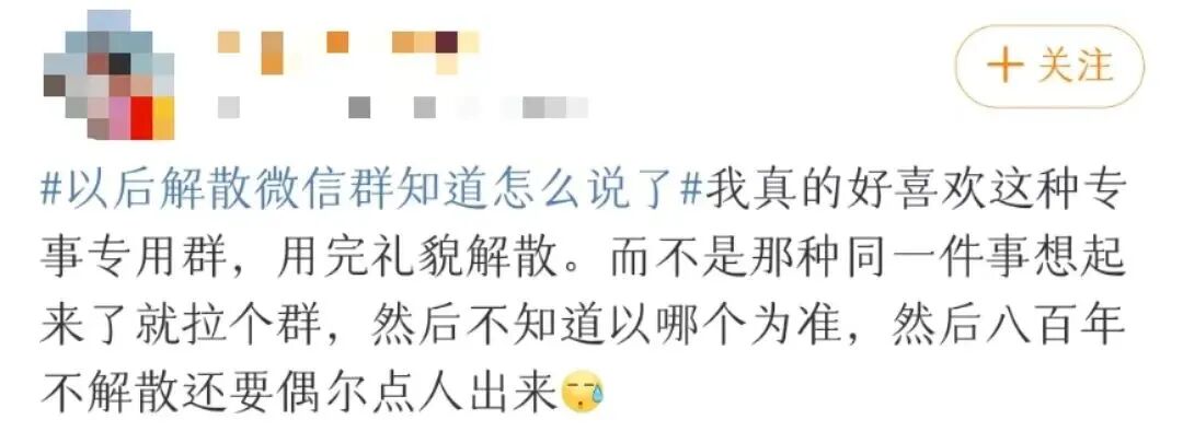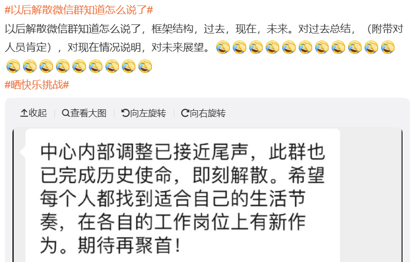 一条有关#以后解散微信群知道该怎么说了#的话题就这样上了微博热搜——