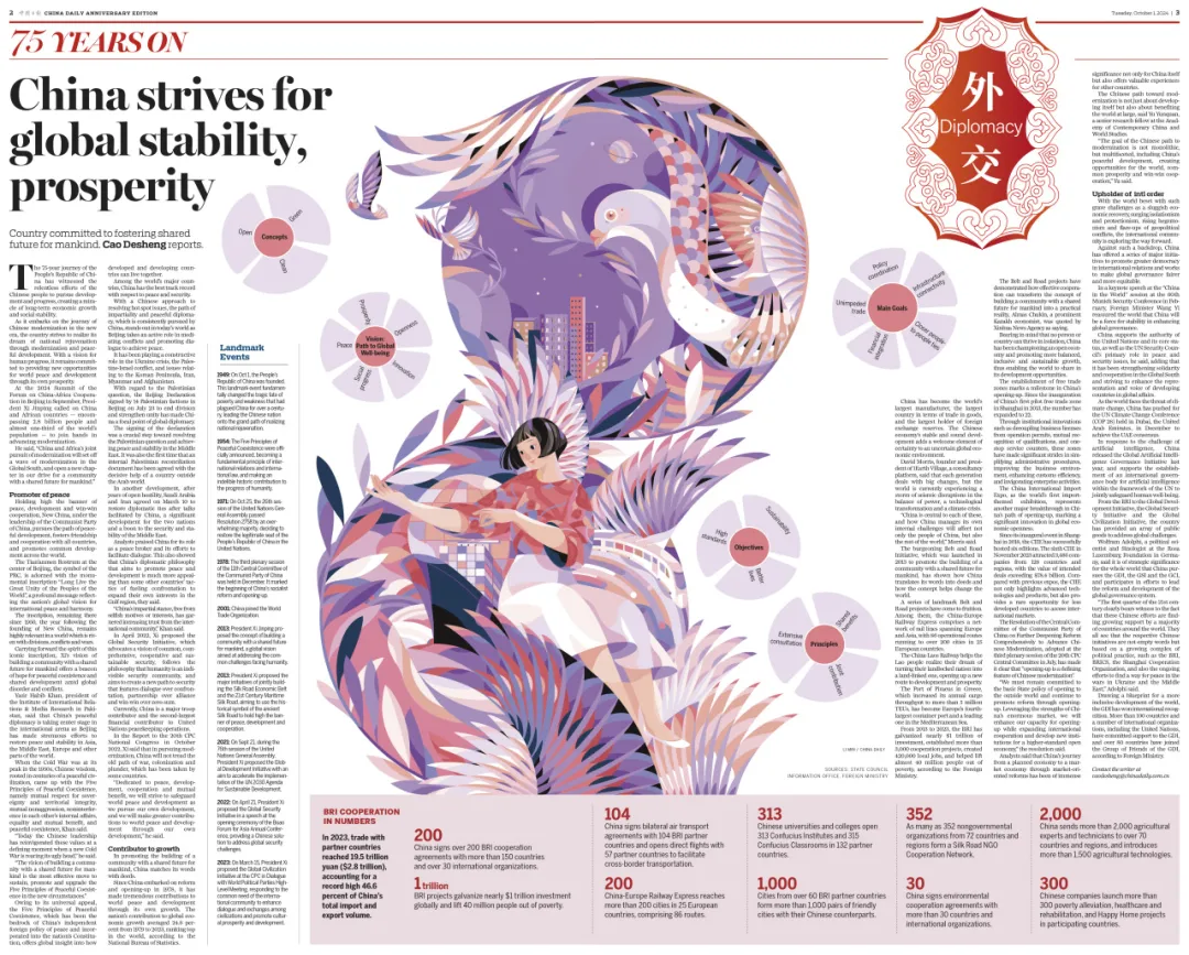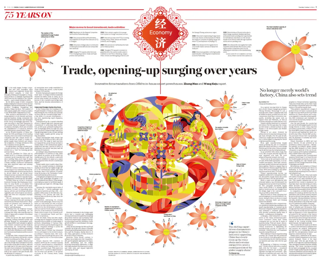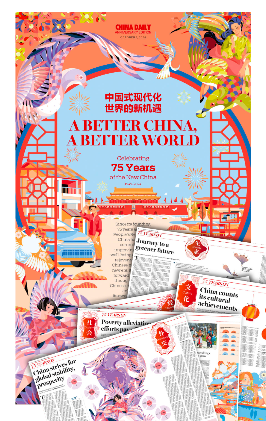 新中国成立75周年之际,《中国日报》推出《中国式现代化世界的新机遇》专刊,以深度报道、精美插图和版面设计为特色,回顾75年来我国在各重点领域取得的巨大成就,展望以进一步全面深化改革推进中国式现代化的广阔前景和给世界带来的新机遇。