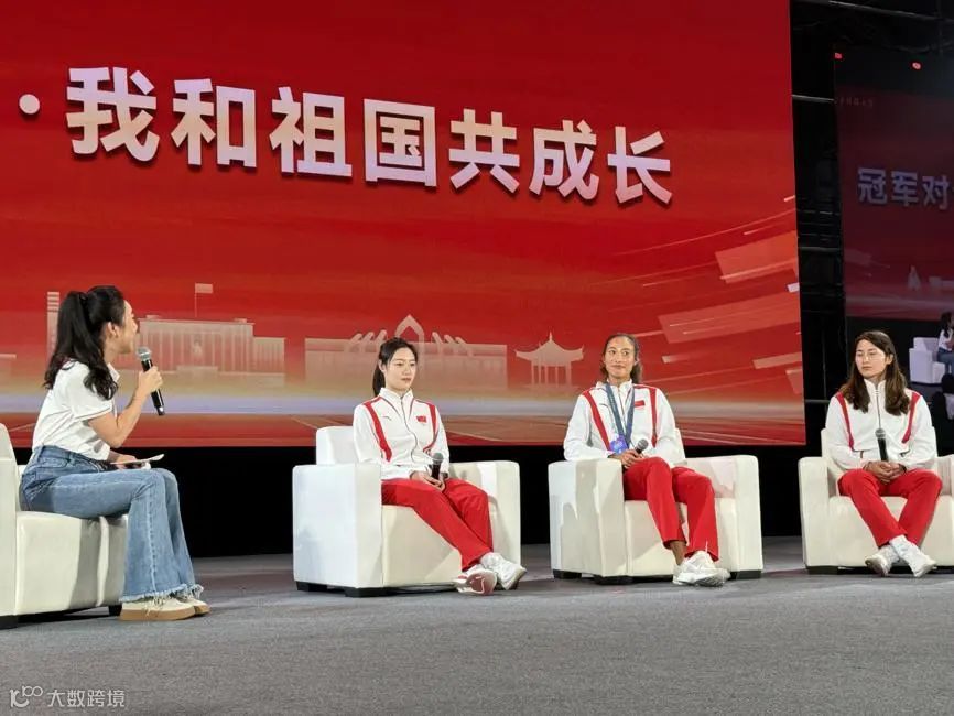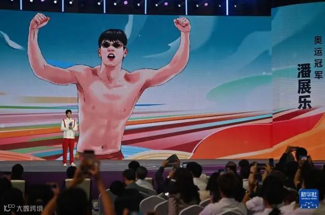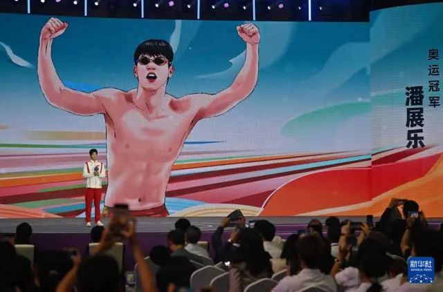 奥运冠军潘展乐在台上演讲。图源:新华社