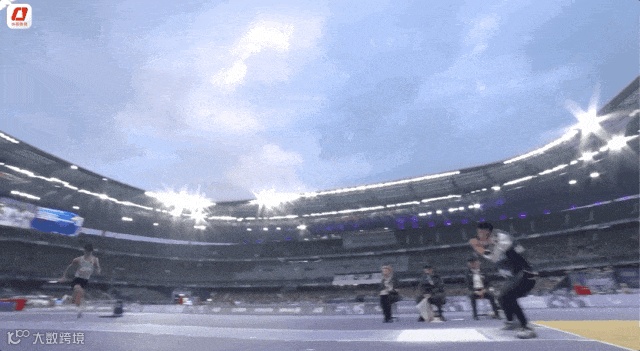 邸东东奋力一跃,在空中划出一道飘逸的弧线,跳出6米85的成绩成功卫冕,打破了尘封10年的世界纪录。