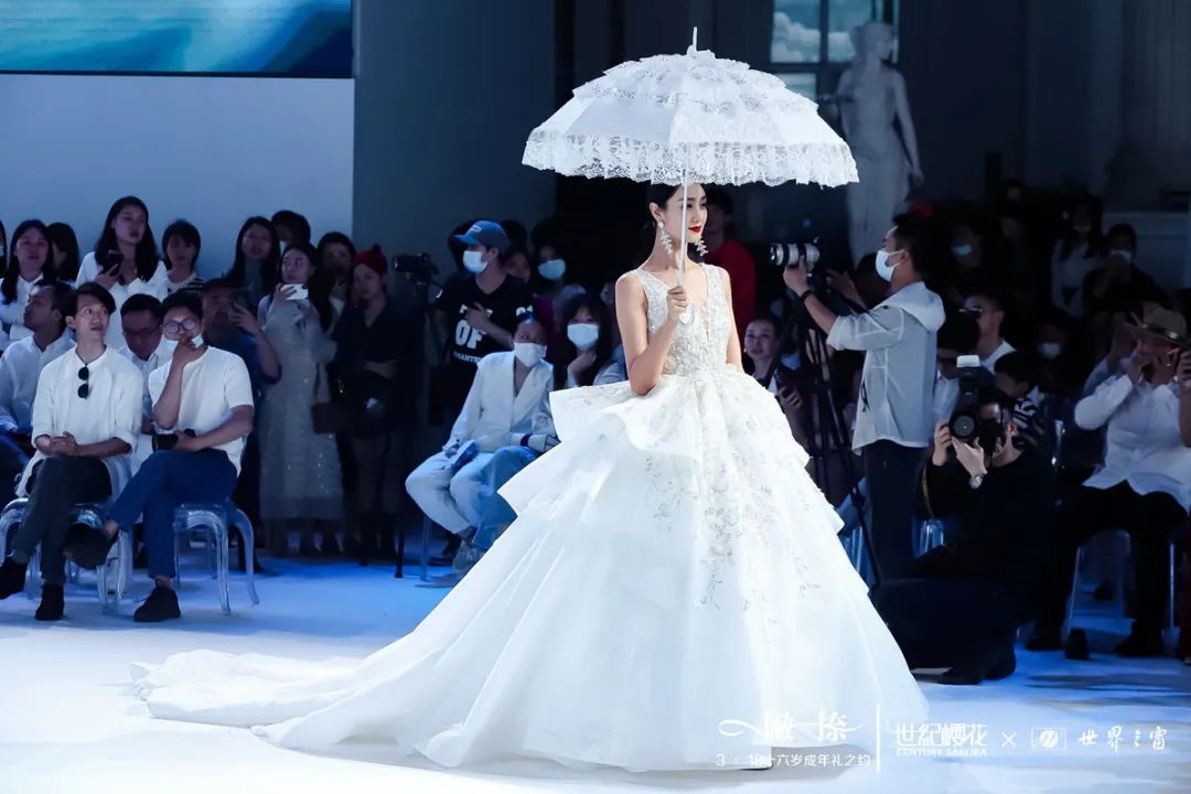 而全场采用白色系的装修风格以及白色系服装,整体洁白无瑕,宛若白纸,一如世纪樱花初始,由洁白走向彩色,由纯粹走向丰富。