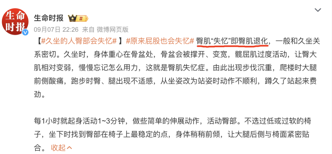到底啥是“臀部失忆” 呢?生命时报官微解释: