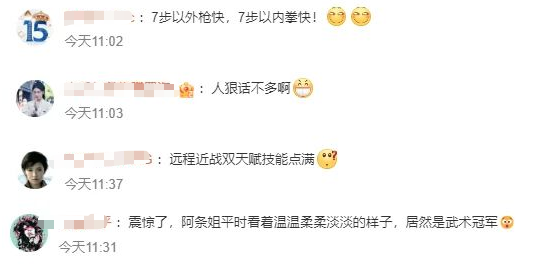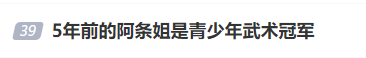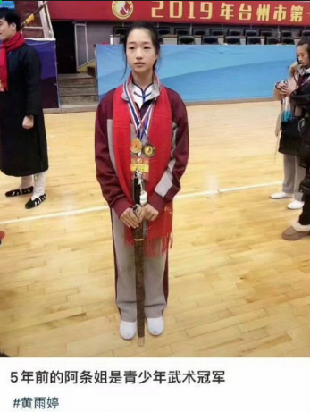 有网友发帖称,原来五年前的“阿条姐”是青少年武术冠军。