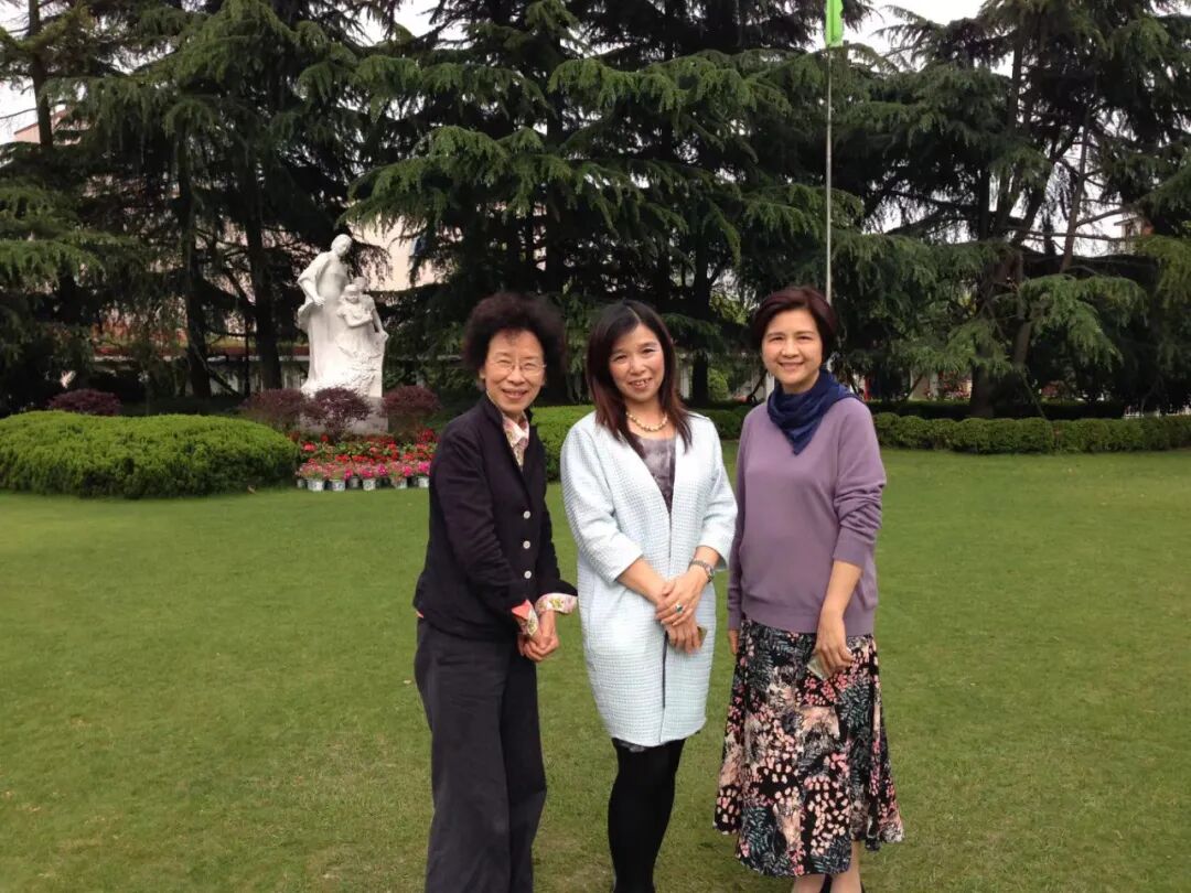 2015年,大冈夕伽子(中)拜访宋庆龄幼儿园 图片来源:大冈夕伽子