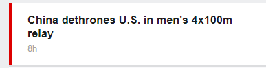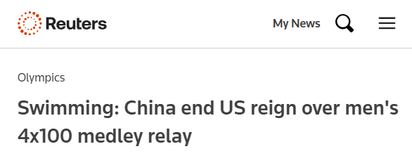 美国娱乐体育节目电视网(ESPN)报道称,“中国队废黜了美国游泳在男子4x100米混合泳接力上的王位”。