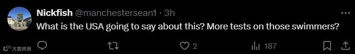 世界泳联第一时间在社交平台上发帖:“多么精彩的比赛!中国队以3分27秒46的成绩完赛,力压美国队和法国队。”并配上了中国游泳健儿振臂高呼胜利的照片。