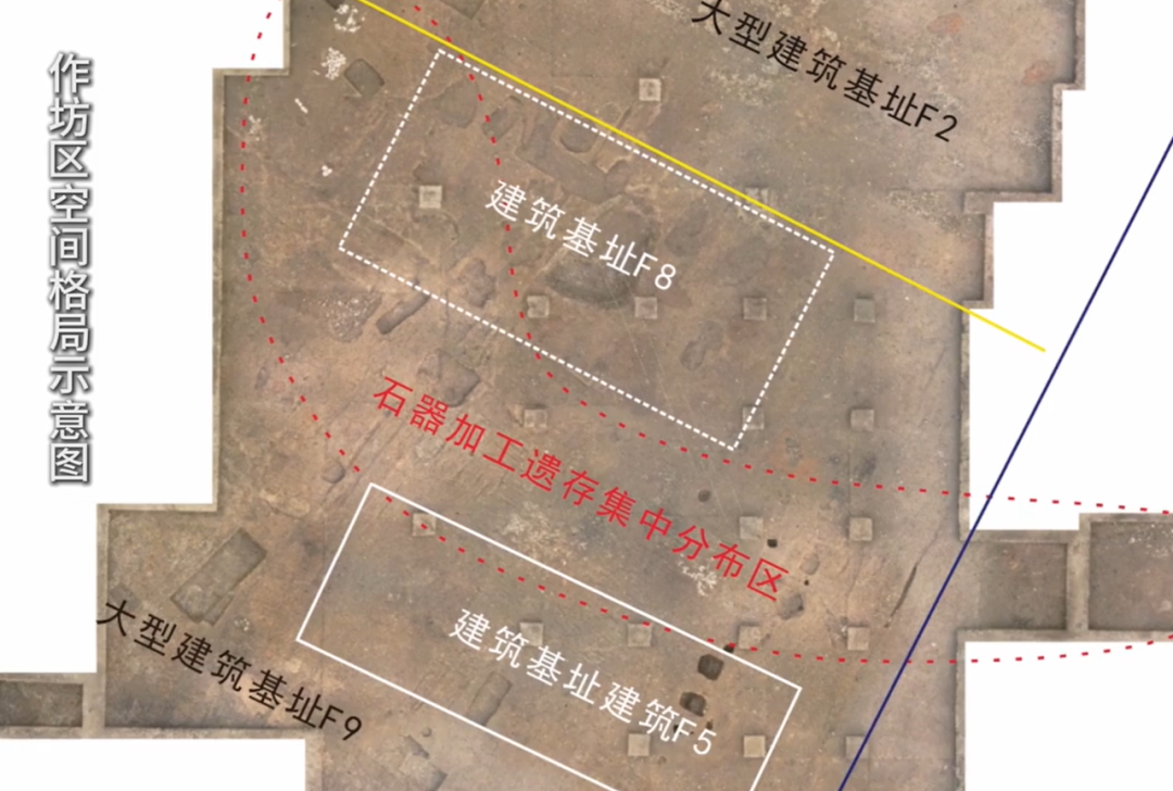 在三星堆月亮湾燕家院子附近,四川省文物考古研究院陆续发现了高等级建筑基址、灰坑、灰沟、石器生产加工遗迹等400多处,出土陶器、玉器、石器等4000多件。新出土的文物形成早期手工业较为完整的链条。专家初步判断新发现为玉石器作坊。