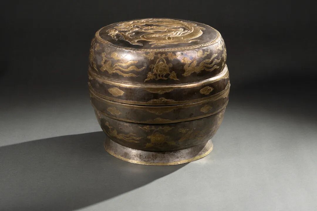 龙纹金花银妆奁,陈国公主与驸马合葬墓出土