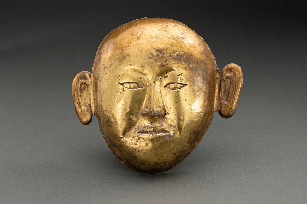 金面具,内蒙古通辽市陈国公主与驸马合葬墓出土,出土时覆盖于公主的面部