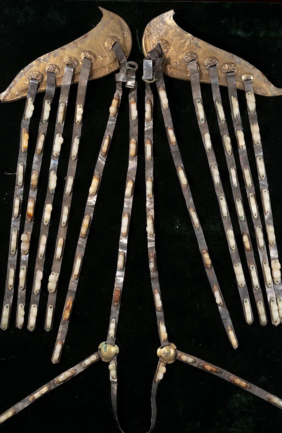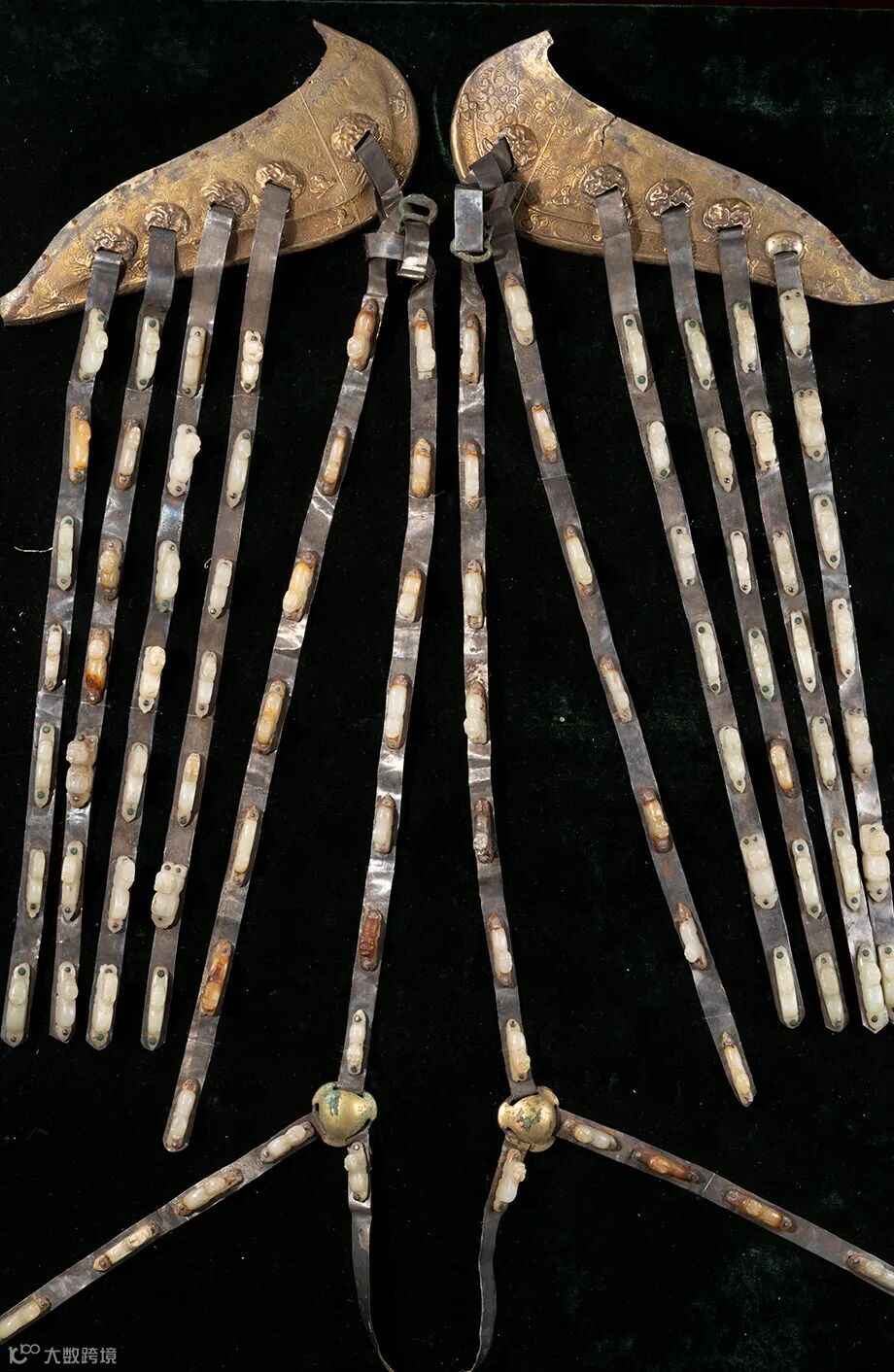 镶玉银带,垂挂于鞍座左右两侧的鞍翅上,陈国公主与驸马合葬墓出土