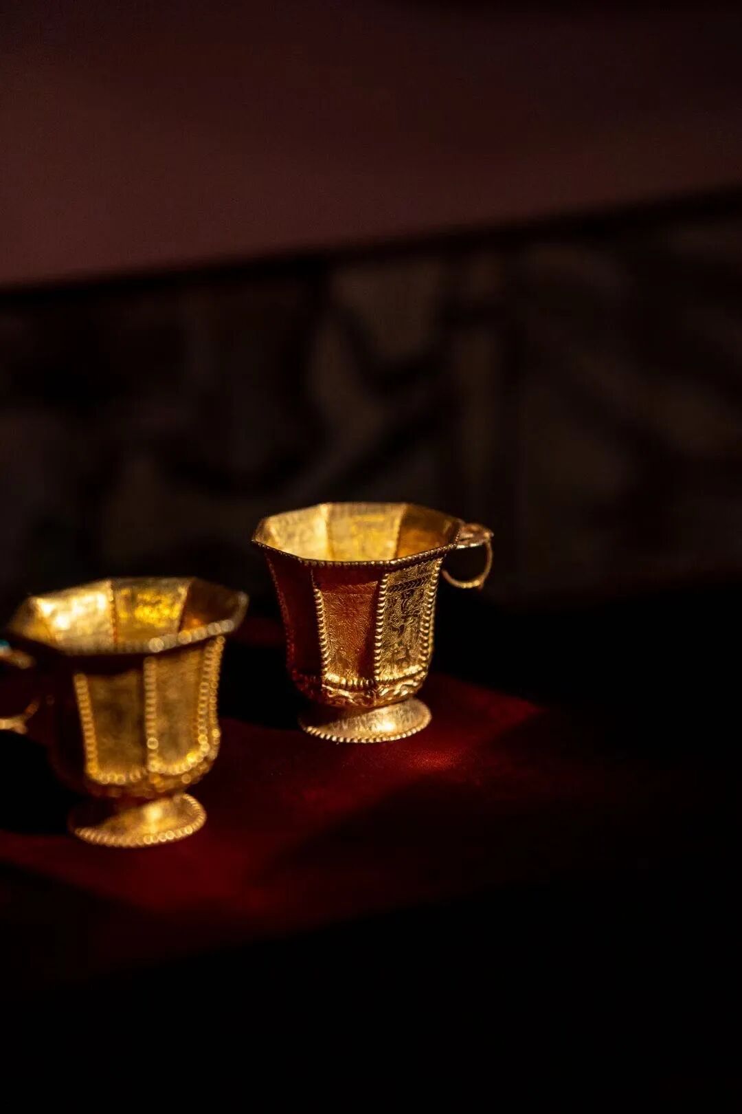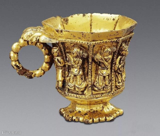 伎乐纹八棱金杯,陕西西安何家村唐代窖藏出土,与辽墓出土的金杯一样,都带有明显的域外造型和装饰风格
