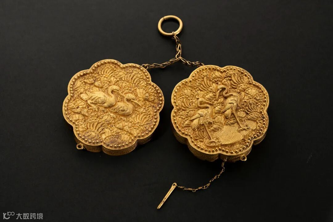 此外还有一对带链的小金盒,据策展人说,可能是盛放脂粉的容器,挂在腰间,便于公主在外出骑马的时候随时简单地补妆。