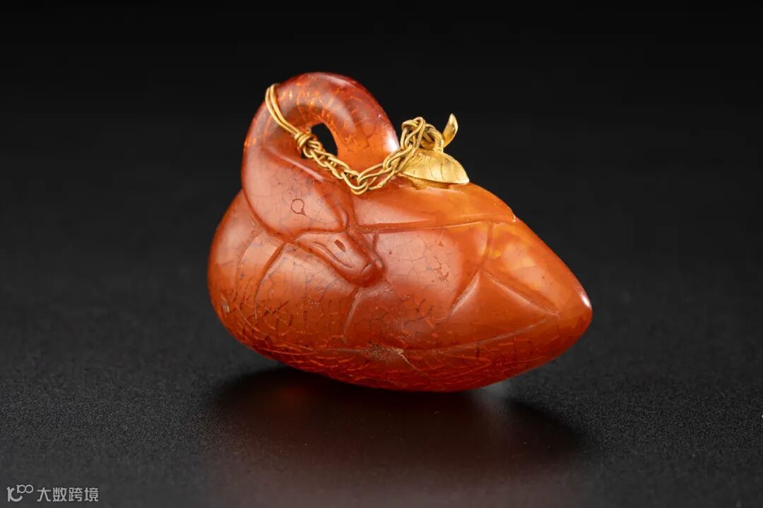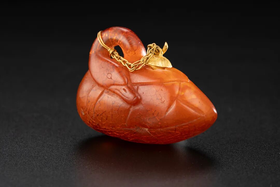 鸿雁形盒琥珀佩饰,陈国公主与驸马合葬墓出土