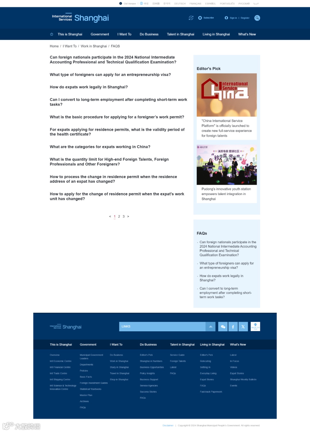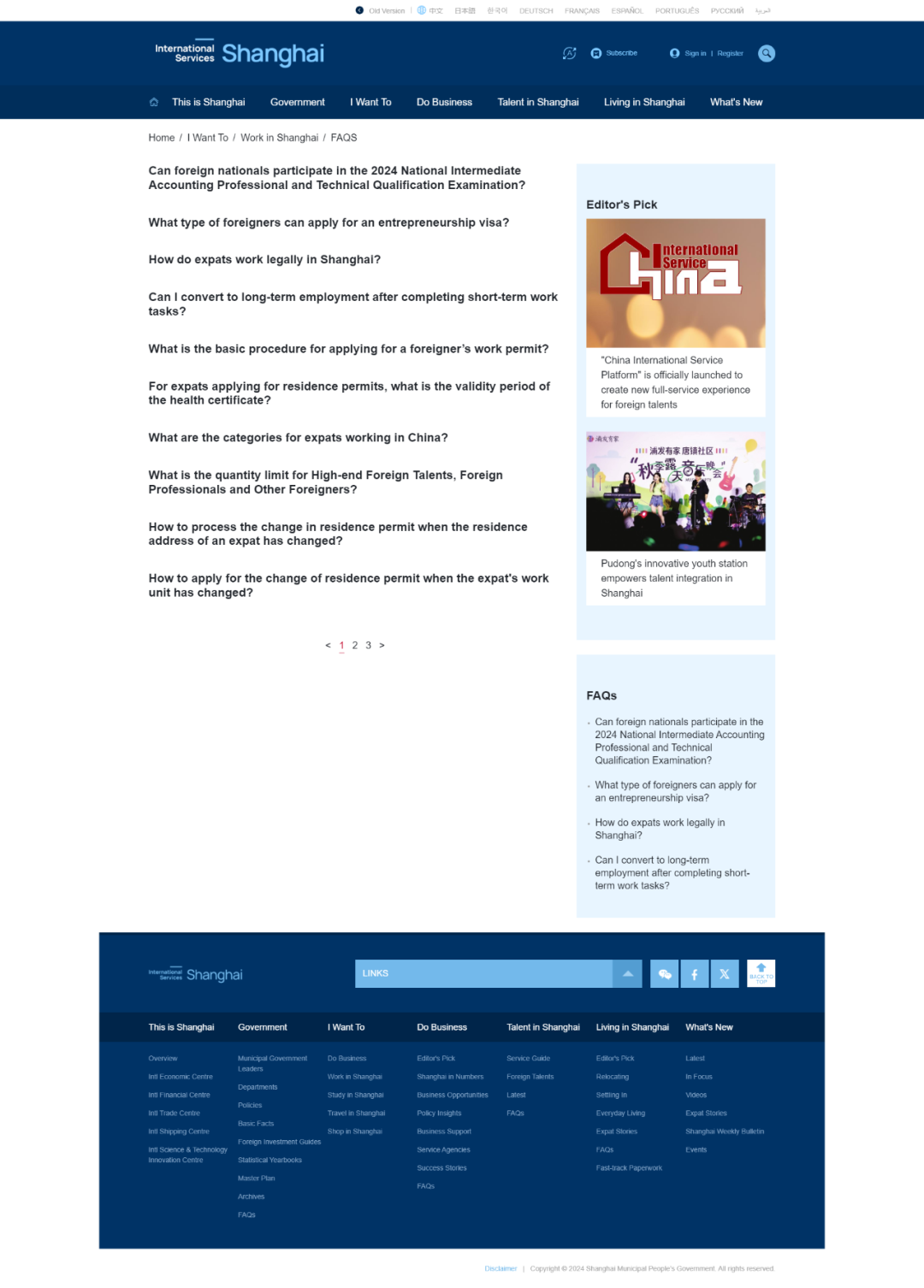 "How can I work legally in Shanghai?", "Who can apply for an entrepreneurial visa?"... the "Frequently Asked Questions" section aggregates a list of common inquiries related to expatriate employment in Shanghai, offering solutions and clarifications.