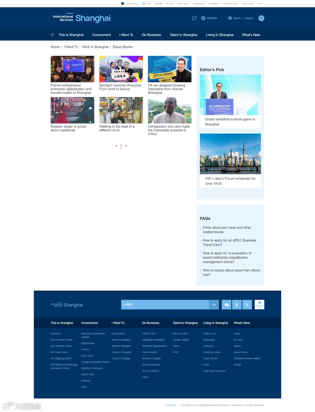 The "Expat Stories" section encompasses employment narratives of expats from various countries and professional backgrounds in Shanghai, genuinely and vividly depicting the diverse life experiences of expats in the city.