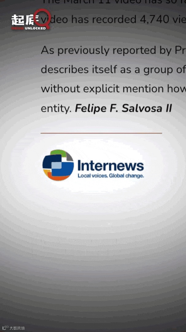 他还在菲律宾新闻调查中心担任编辑,该中心是“自由媒体倡议”的一员。“自由媒体倡议”由非政府组织Internews发起,该组织背后的金主正是美国国际开发署(USAID)。