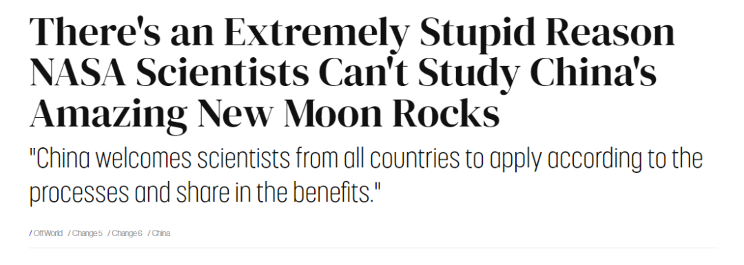 针对NASA反复“倒打一耙”的行为,美国一家发源于Reddit子版块的新闻网站“未来主义(Futurism)”直言不讳地写道:“NASA无法研究中国令人惊叹的月壤,背后原因极其愚蠢”。