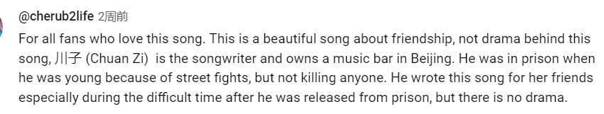 这首歌的创作者川子,年少时为帮朋友出气打架,把自己打进了监狱。在监狱里,川子开始学习吉他,学习写歌。也正是因为专注音乐和在狱中的出色表现,他获得了减刑。在八年零八个月的时候出狱,开始了自己新的音乐人生。