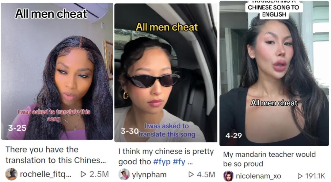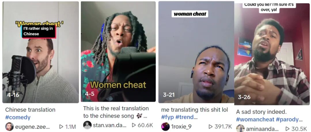 3月26日,马来西亚电视主持人兼内容制作者马克·奥迪亚(Mark Odea)拍摄了自己的翻唱视频,视频上方还有“Women cheat”版英文音译字幕。