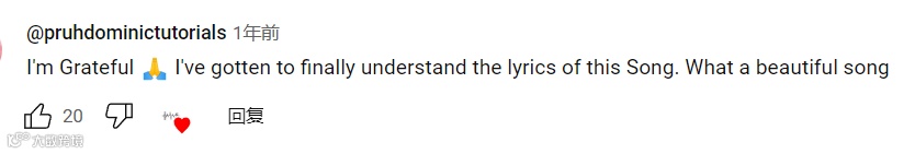 I'm grateful. I've gotten to finally understand the lyrics of this Song. What a beautiful song! 太感激了。我终于弄懂这首歌的歌词了。多美的歌啊!