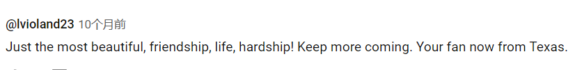Just the most beautiful, friendship, life, hardship! Keep more coming. Your fan now from Texas. 这歌太美了,友谊、人生、艰辛!多发一些吧。我是你得克萨斯州的粉丝。