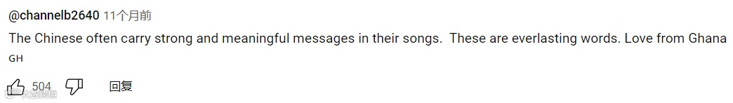 The Chinese often carry strong and meaningful messages in their songs. These are everlasting words. Love from Ghana.