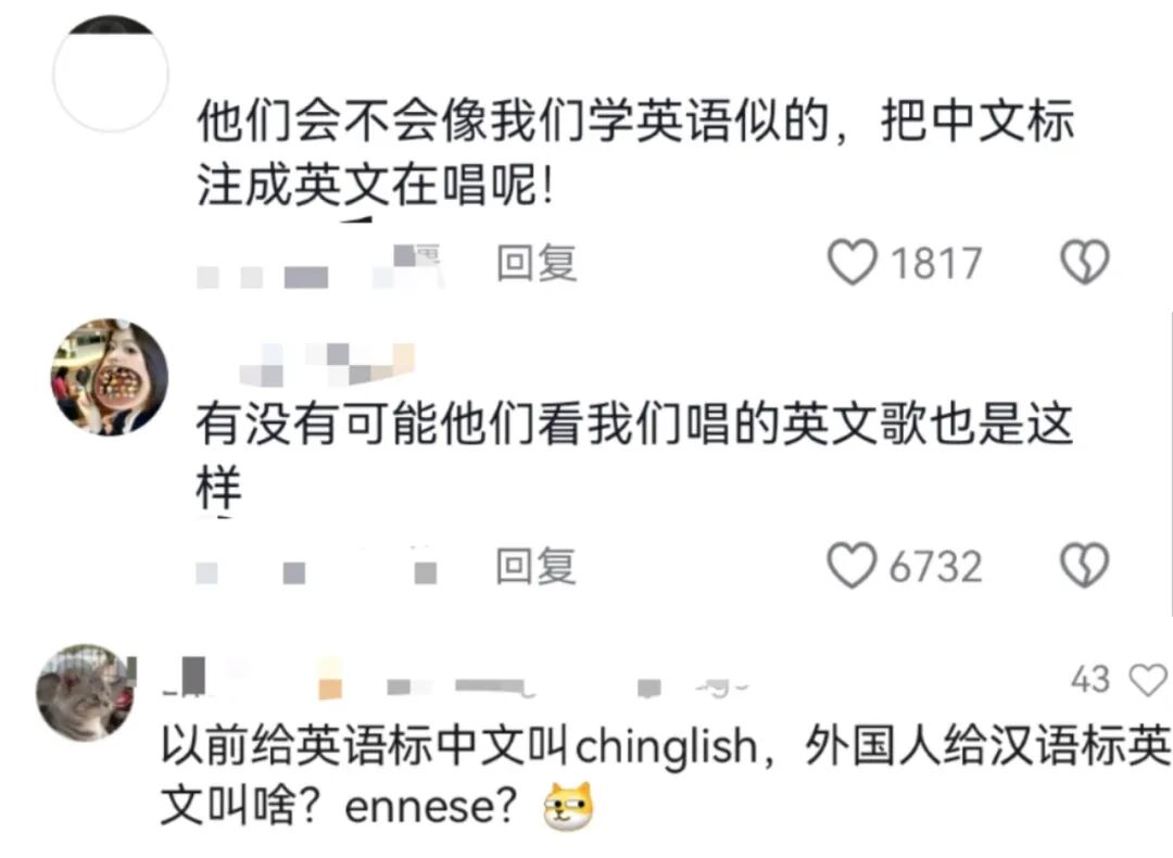 虽然空耳英文歌词与中文原意大相径庭,但口型真的每一句都能对得上......怪不得这位博主会感叹:“没想到这首歌是英文的。”(I didn't realize this song was in English.)