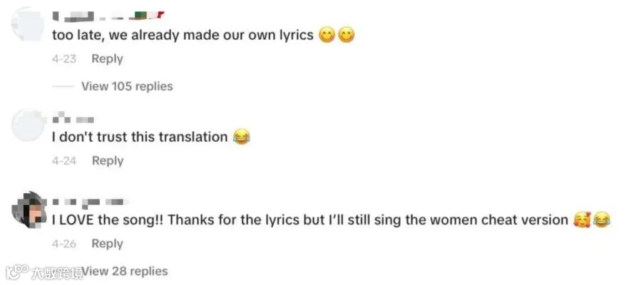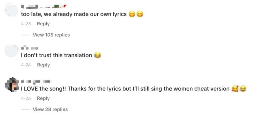 一些网友打趣,“太晚了,我们已经有自己的歌词了!”