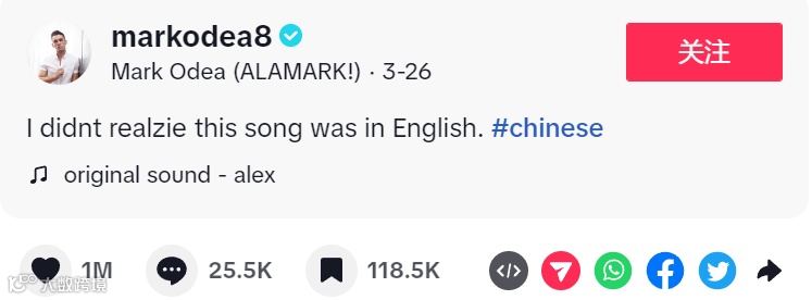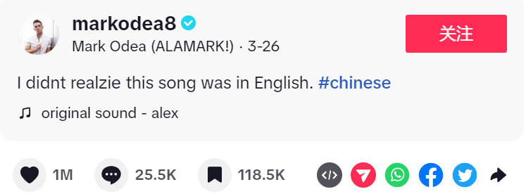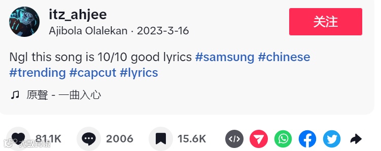 这首歌如今走红海外社交媒体,掀起了全球中文歌曲热潮。