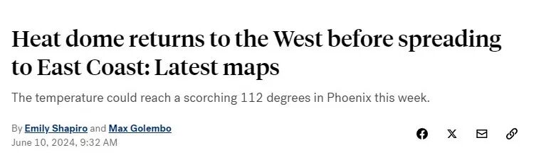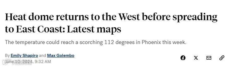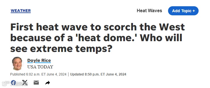 “热穹顶(heat dome)”有可能持续二十多天,而“热浪(heat wave)”通常指持续三天或三天以上的异常高温。