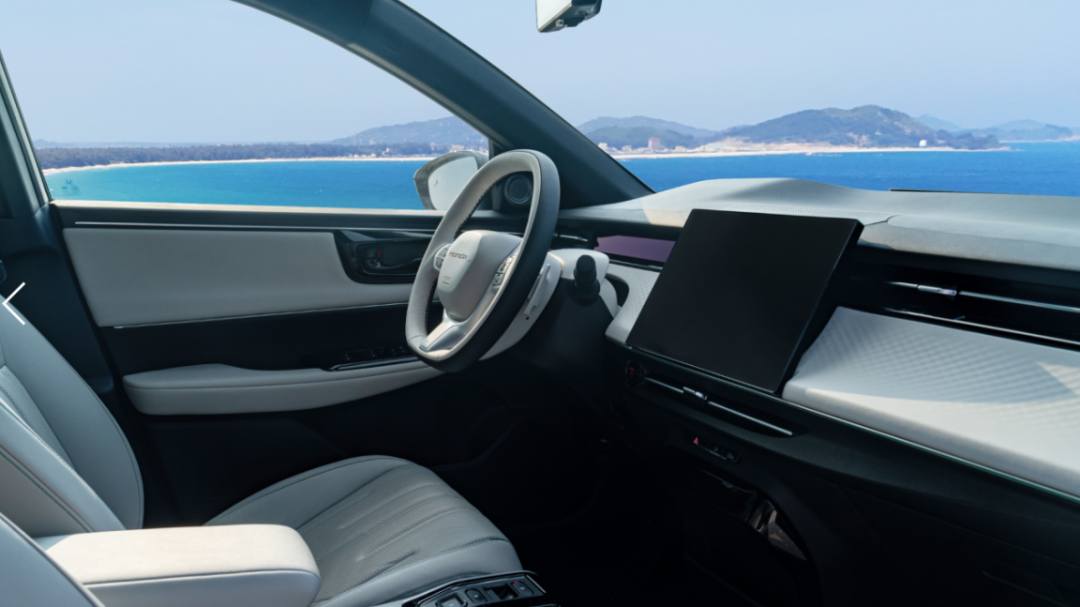 e:NP2极湃2的座舱设计清爽简洁,内饰没有选择多块大屏进行堆砌,而是采用12.8英寸中控屏,搭配轻薄仪表与大尺寸HUD组成的显示系统。